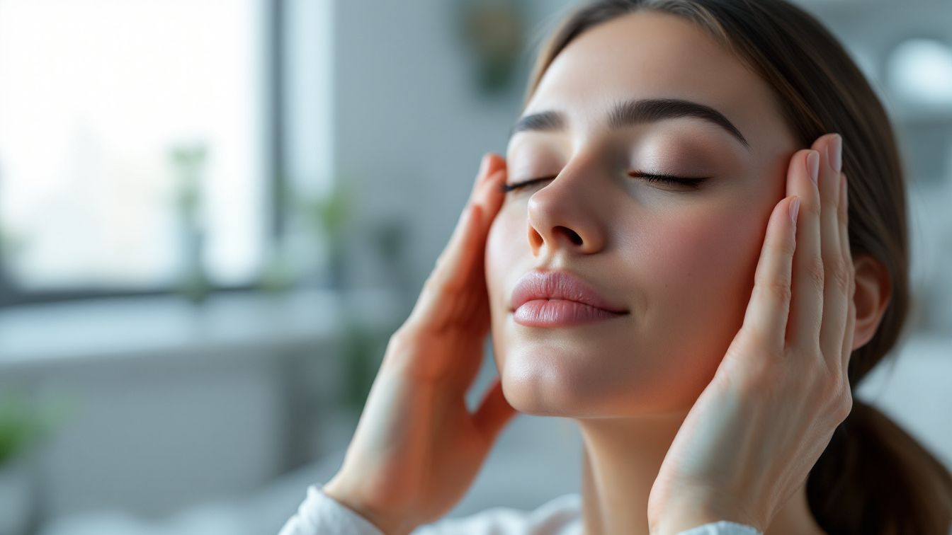 - 이마 마사지: 손가락을 이용해 이마 중앙에서 관자놀이 방향으로 부드럽게 문지릅니다.