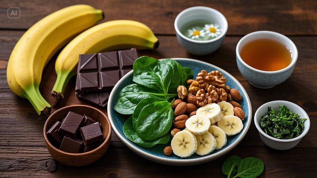 두 번째로는, 마그네슘이 풍부한 음식을 섭취해보세요. 마그네슘은 스트레스를 줄이고 신경을 안정시키는 데 효과적인 영양소입니다. 바나나, 시금치, 다크 초콜릿, 견과류 등은 마그네슘이 풍부한 음식으로, 간식으로 섭취하기에도 좋습니다.